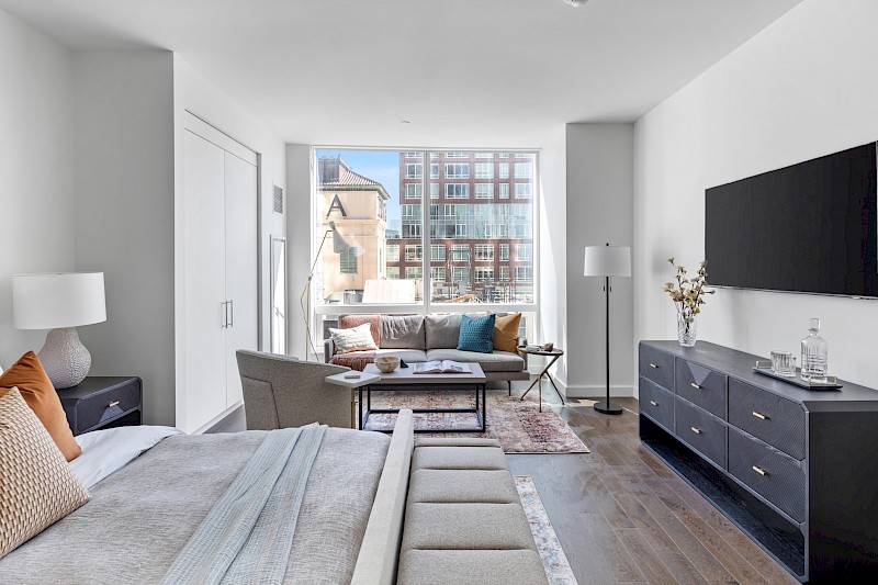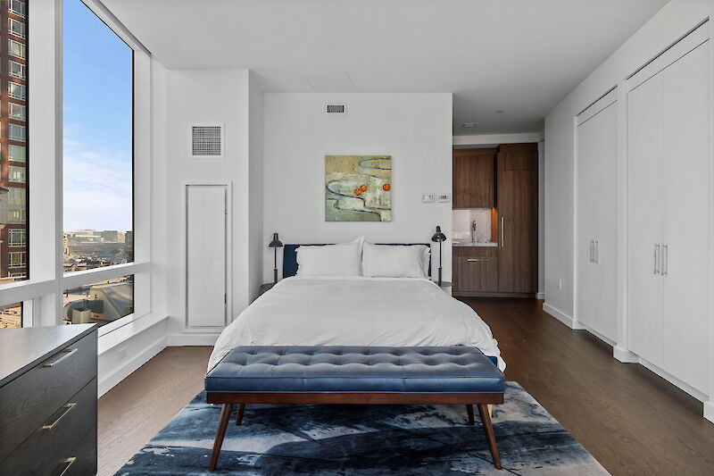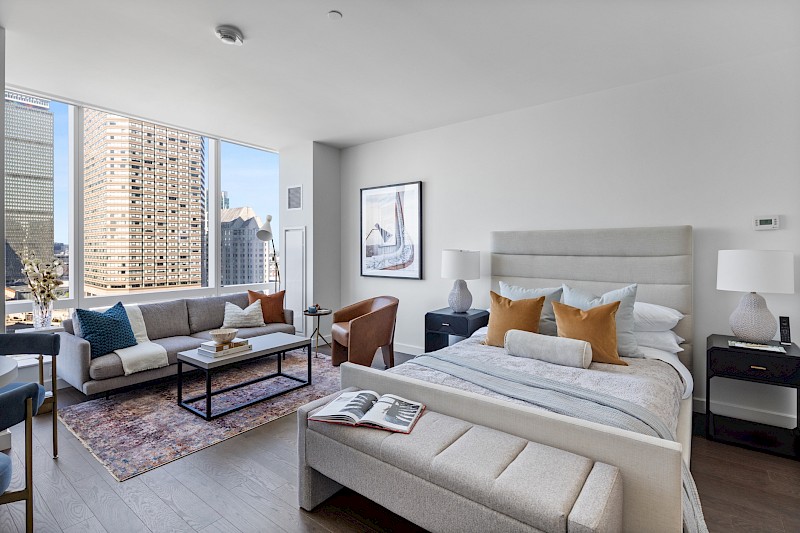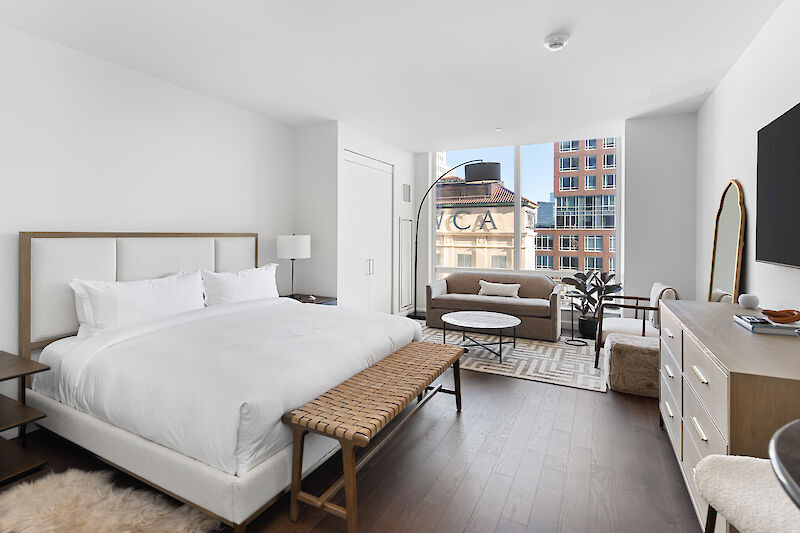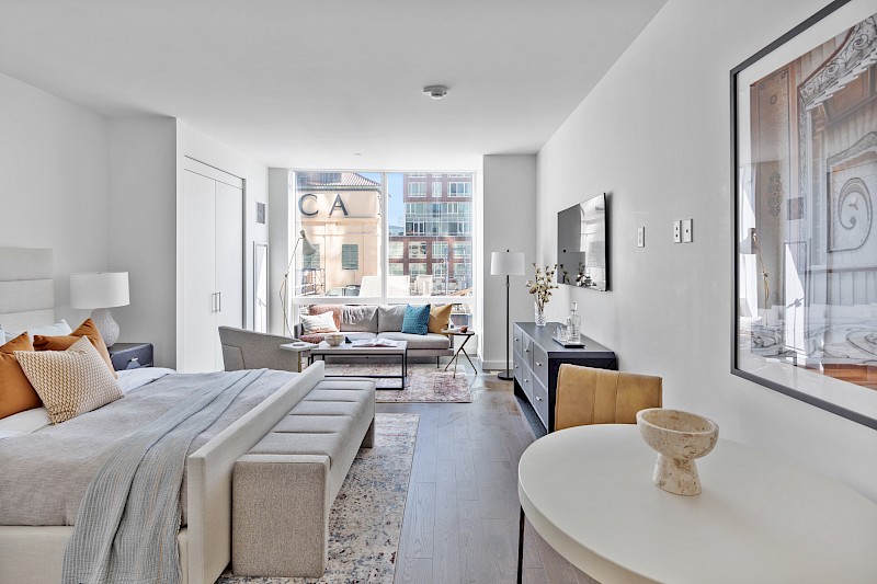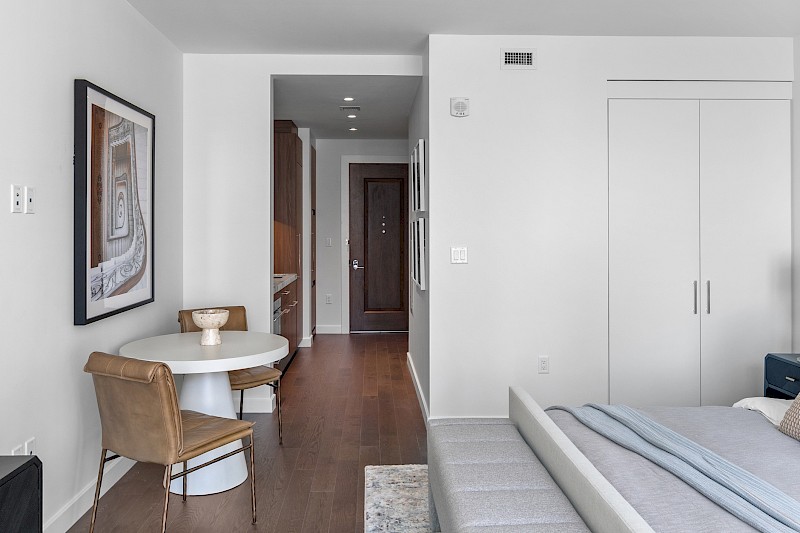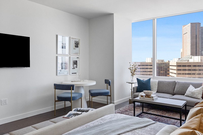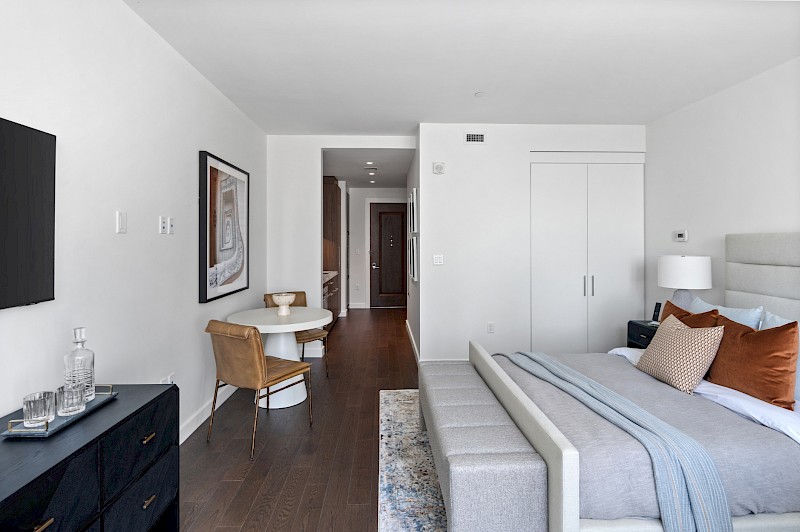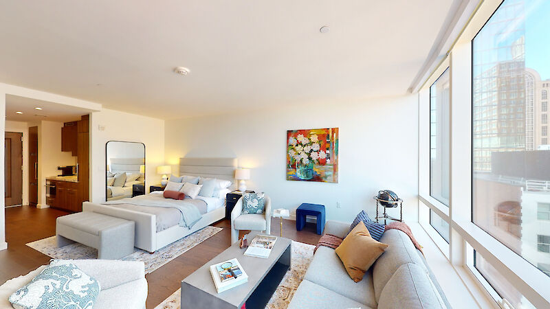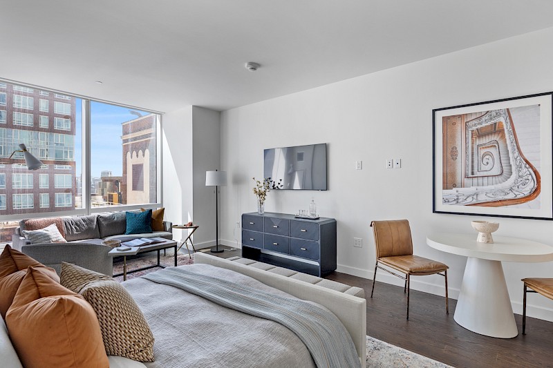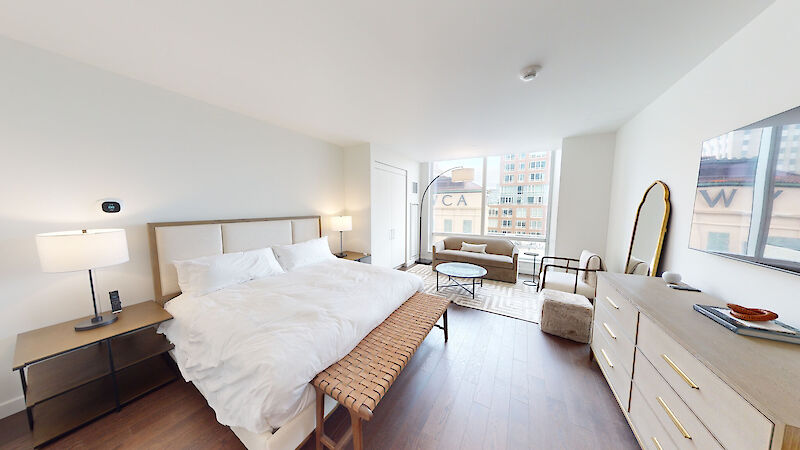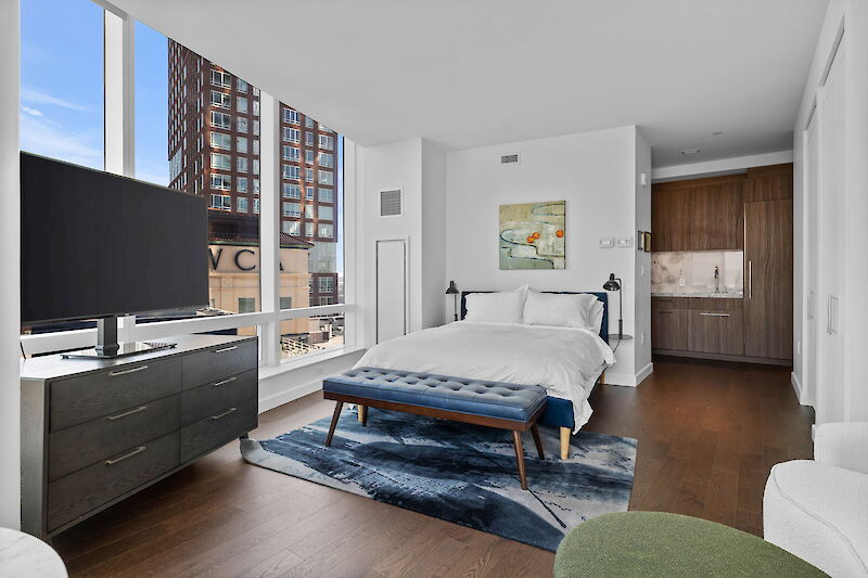 full descriptionUnit 1501 offers an expansive 520sqft of highly functional, furnished studio living, featuring floor-to-ceiling windows, queen bed, plush couch, dining table and chairs for two, six drawer dresser, wall mounted 4k tv, and comes wifi ready. Soft colors and warm tones used throughout the unit will have you feeling right at home! The fully applianced kitchen incorporates marble counters, SubZero & Wolf appliances and in-unit w/d. Pamper yourself in the luxurious bathroom complete with soaking tub & glass shower. Min 1-month lease, rents vary by lease length.