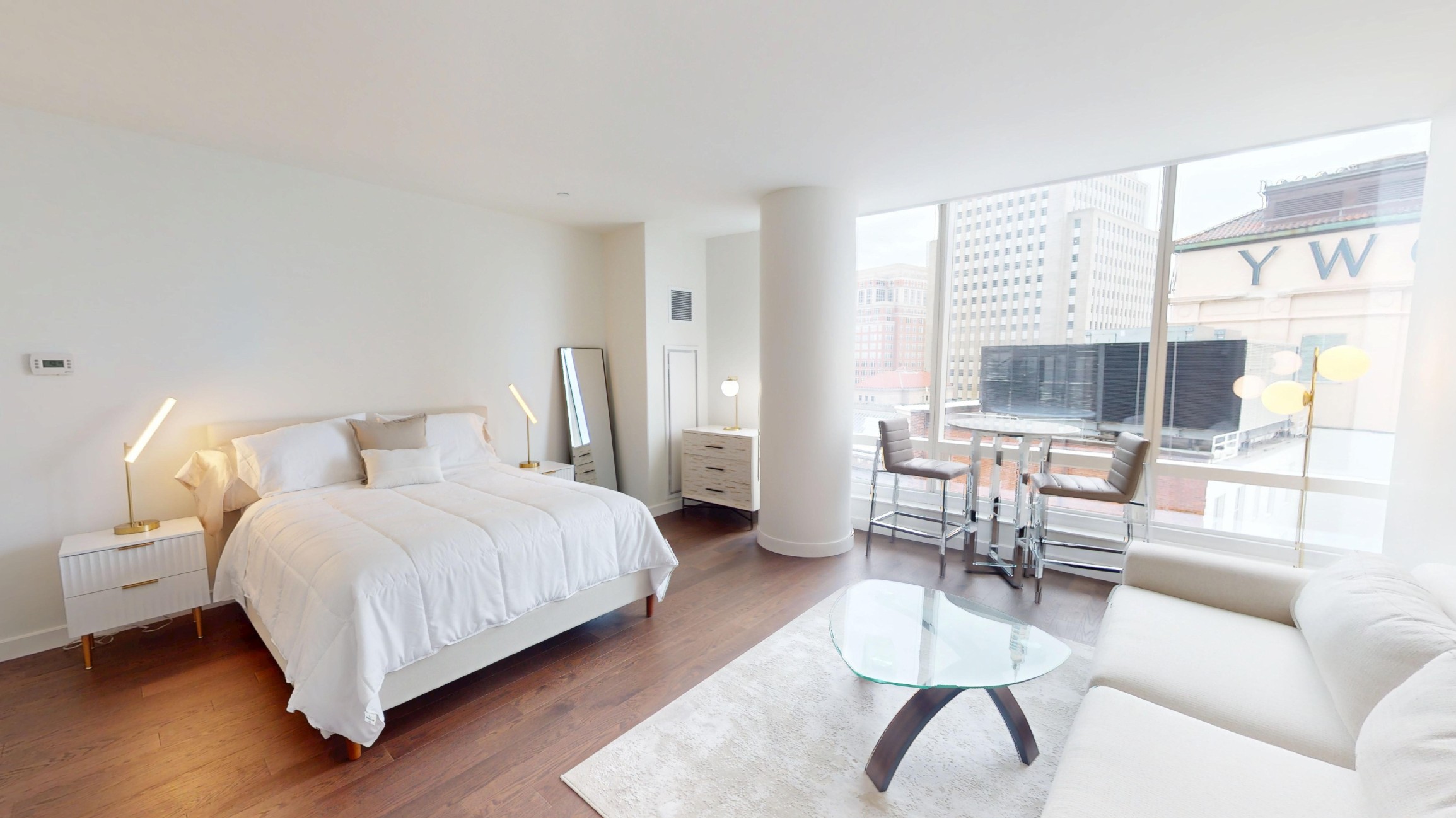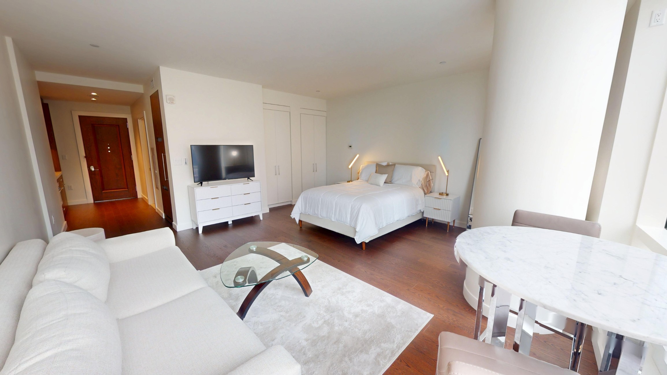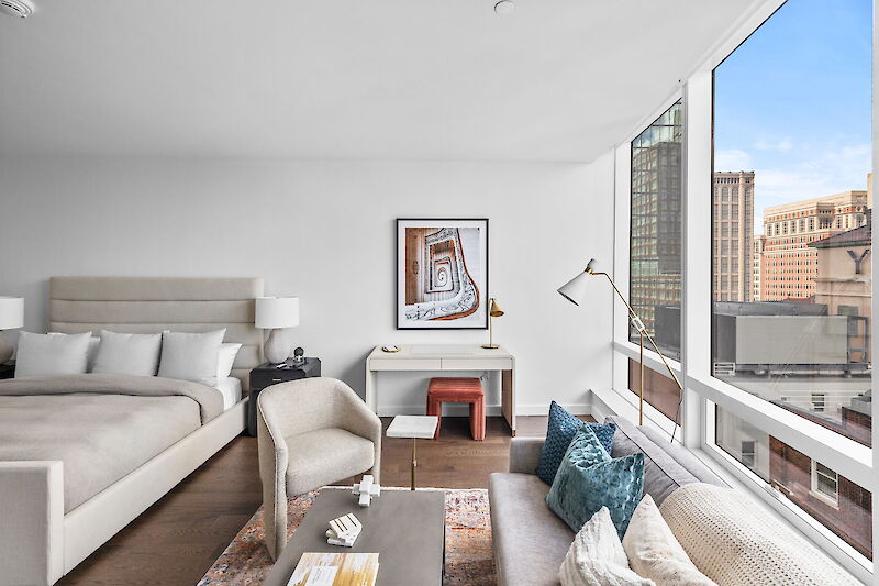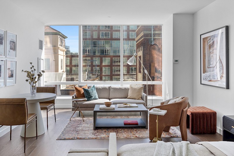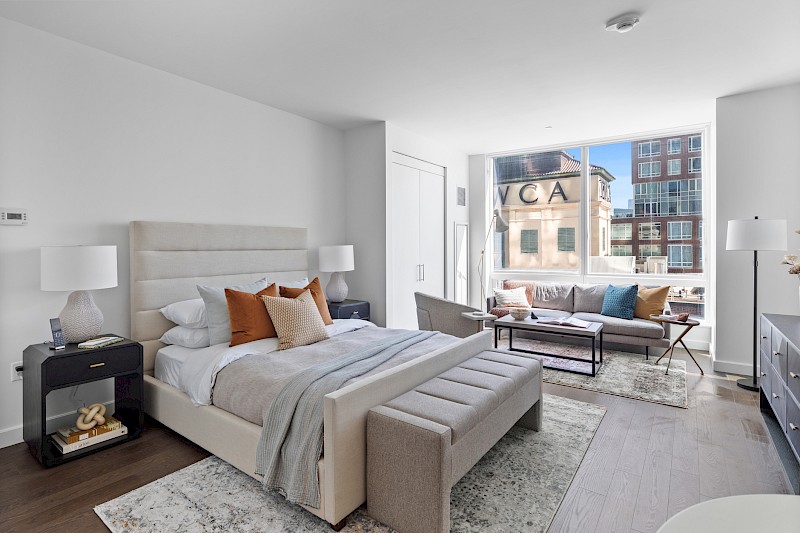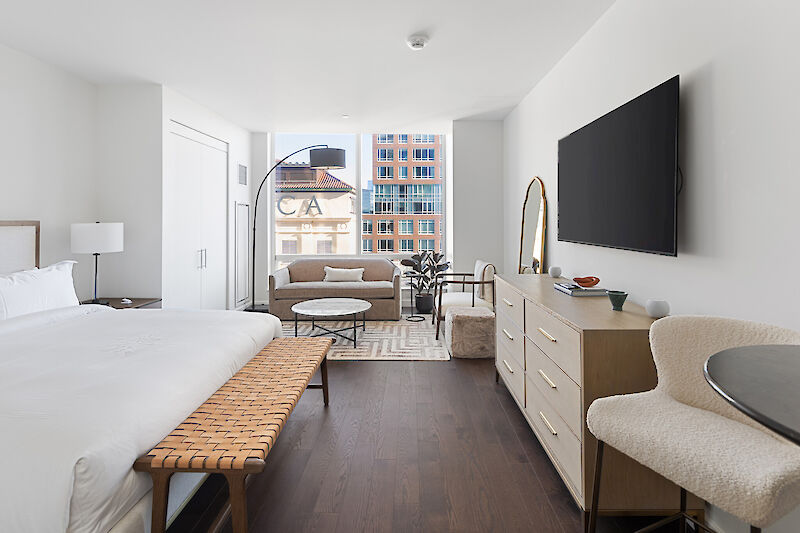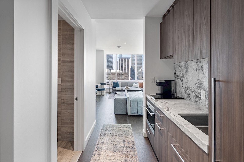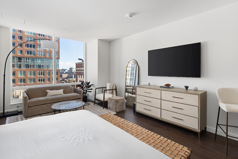 full descriptionUnit 1501 offers an expansive 520sqft of highly functional, furnished studio living, featuring floor-to-ceiling windows, queen bed, plush couch, dining table and chairs for two, six drawer dresser, wall mounted 4k tv, and comes wifi ready. Soft colors and warm tones used throughout the unit will have you feeling right at home! The fully applianced kitchen incorporates marble counters, SubZero & Wolf appliances and in-unit w/d. Pamper yourself in the luxurious bathroom complete with soaking tub & glass shower. Min 1-month lease, rents vary by lease length.