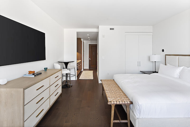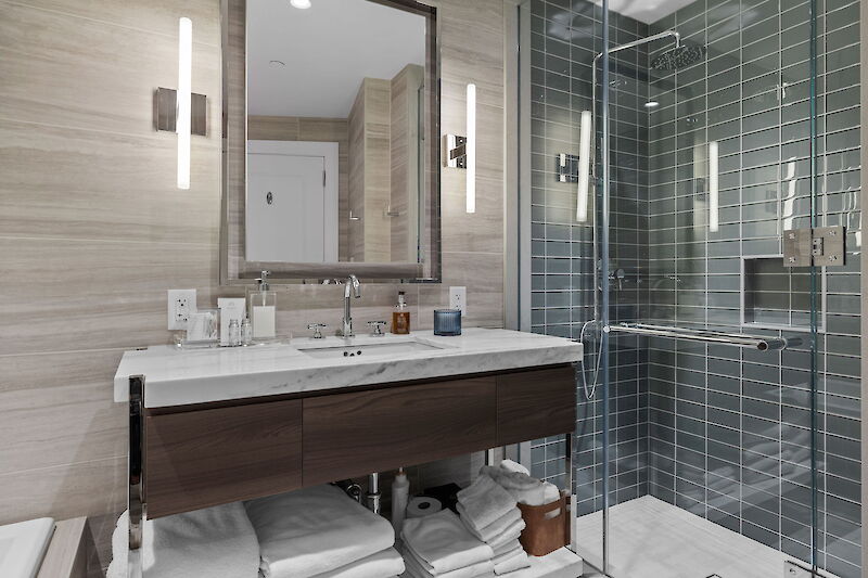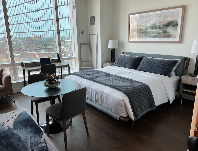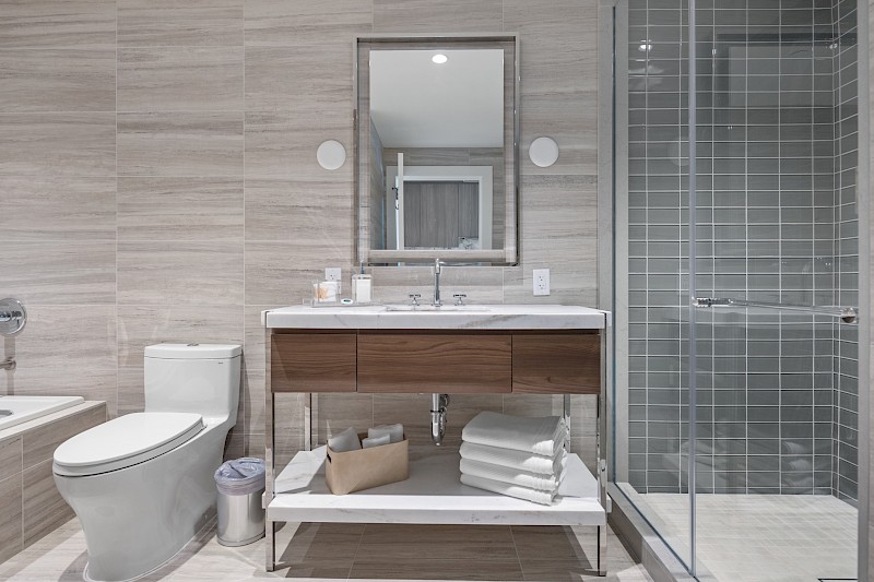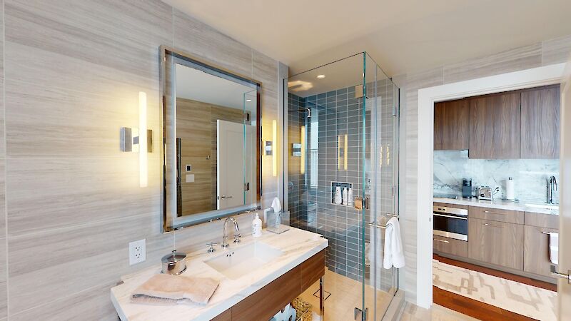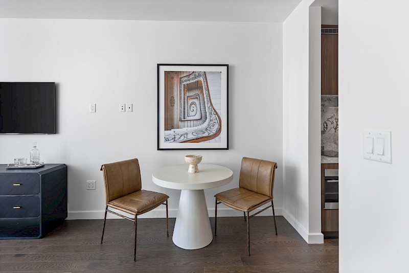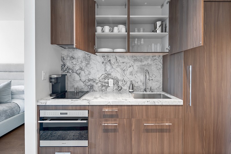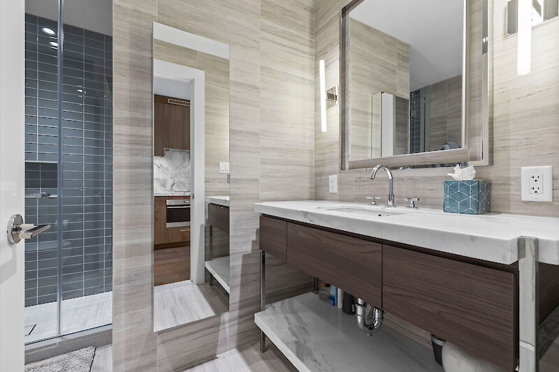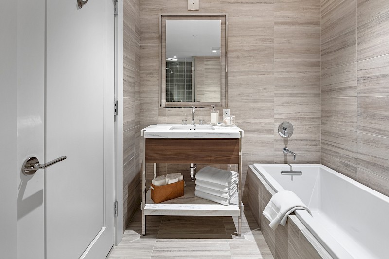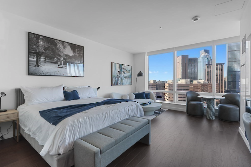 full descriptionUnit 1502 offers an expansive 579 sqft of highly functional, furnished studio living, featuring floor-to-ceiling windows, queen bed, plush couch, dining table and chairs for two, six drawer dresser, wall mounted 4k tv, and comes wifi ready. Soft colors and warm tones used throughout the unit will have you feeling right at home! The fully applianced kitchen incorporates marble counters, SubZero & Wolf appliances and in-unit washer/dryer. Pamper yourself in the luxurious bathroom complete with soaking tub & glass shower.