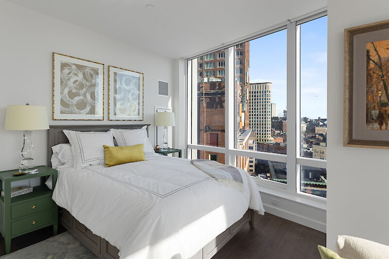 Gorgeous corner unit featuring a separate bedroom area with Boston skyline views!